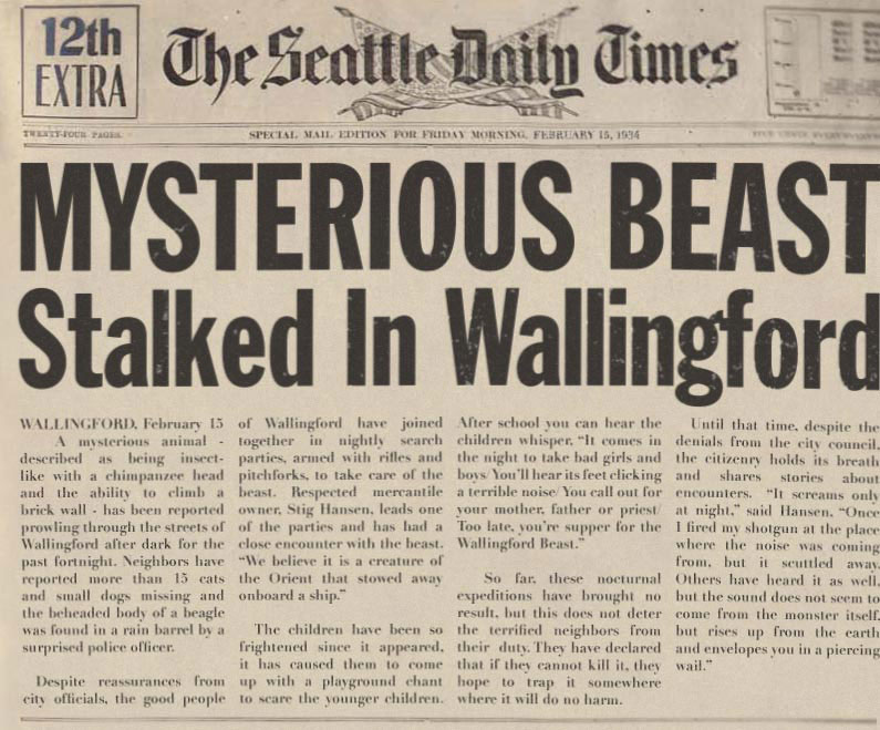 There have long been rumors of a strange beast with an appetite for cats stalking the streets of Wallingford at night. One of the earliest known reports of a beast sighting is this newspaper article from 1934...